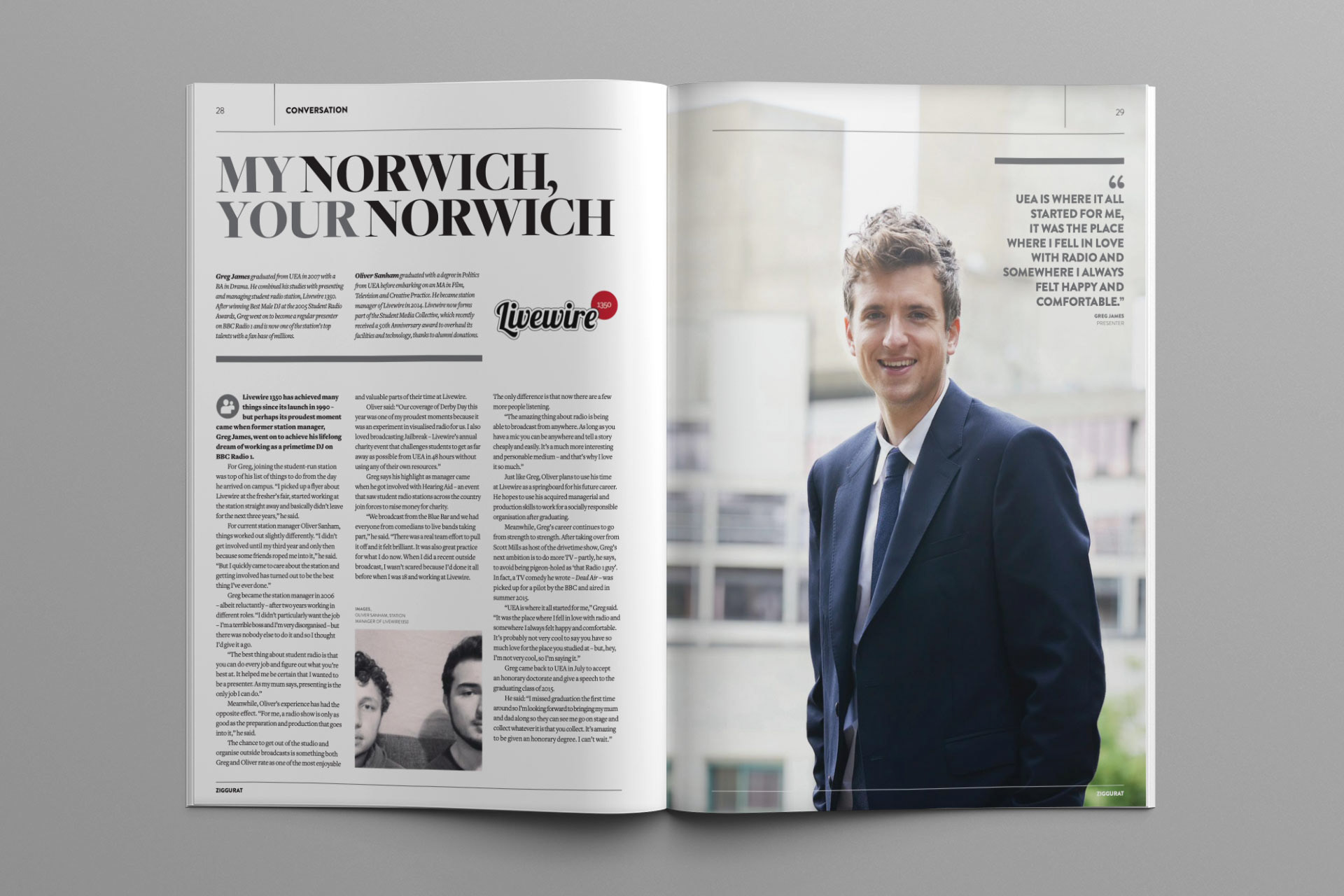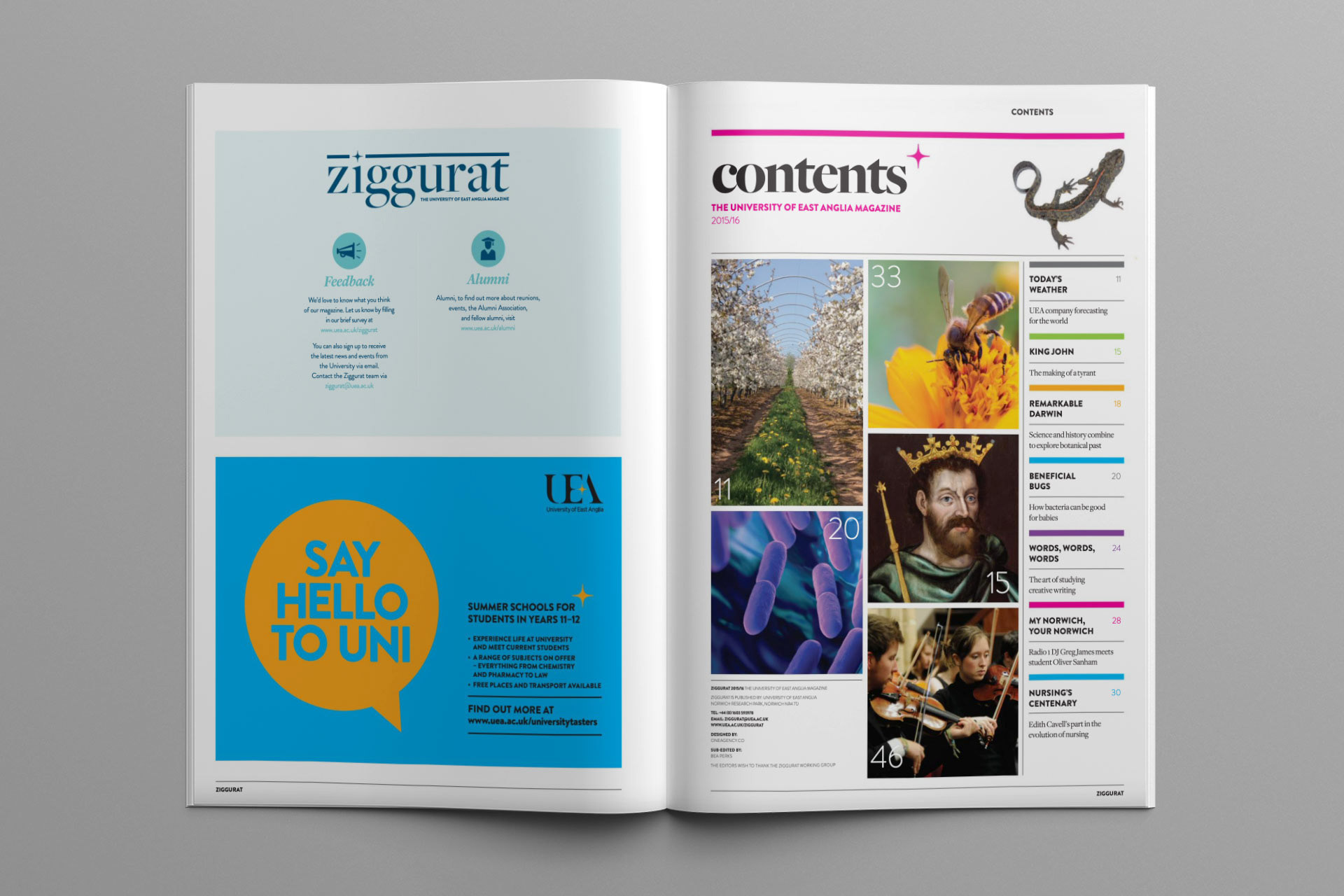 I was fortunate to work with the team at OneAgency on the design and production of Ziggurat, the annual magazine of The University of East Anglia, a full colour print publication distributed to students, staff and alumni.